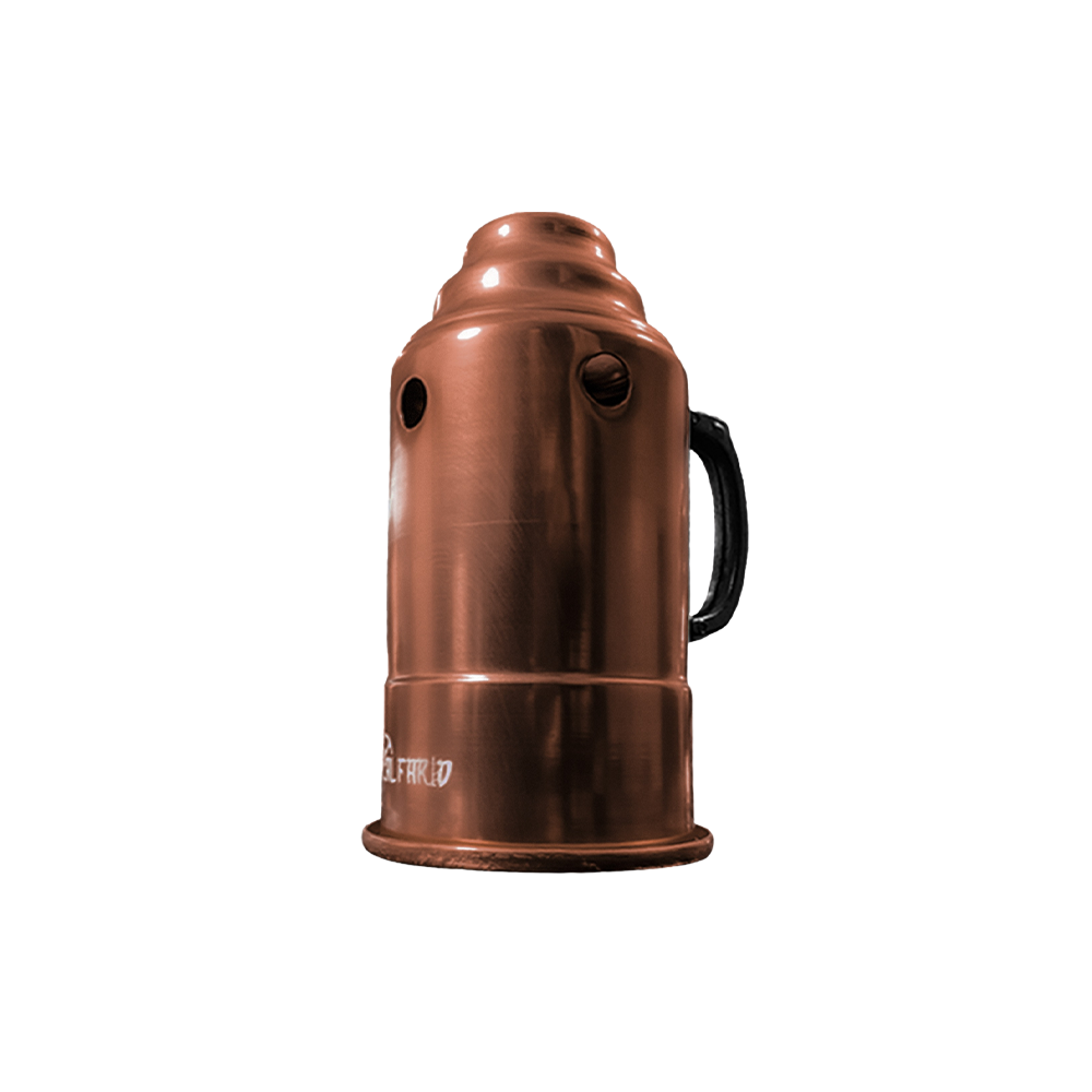 Abafador para narguile marca Al Farid, modelo KAAB, em alumínio com pintura anodizada. 11 cm de diâmetro e 23 cm de altura. Com cabo/alça em baquelite, não esquenta.