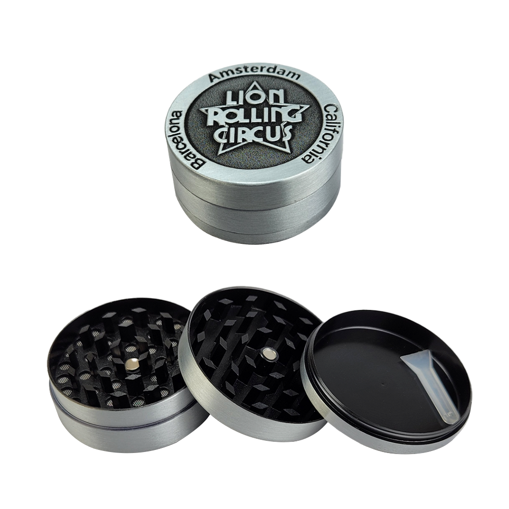 Dichavador De Metal Lion Rolling Circus Médio 3 Partes – Prata Velho