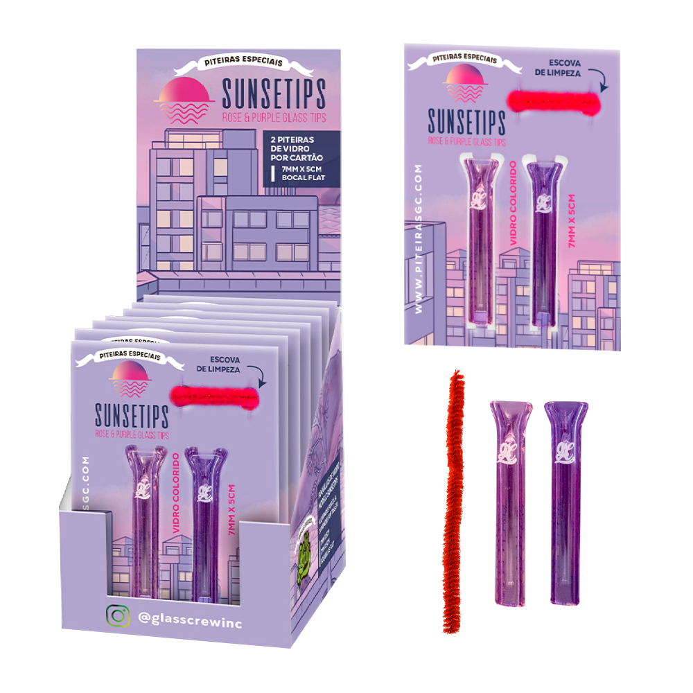 R$29,90Display Piteiras de Vidro Glass Crew Especial – Sunsetips (7 Kits)