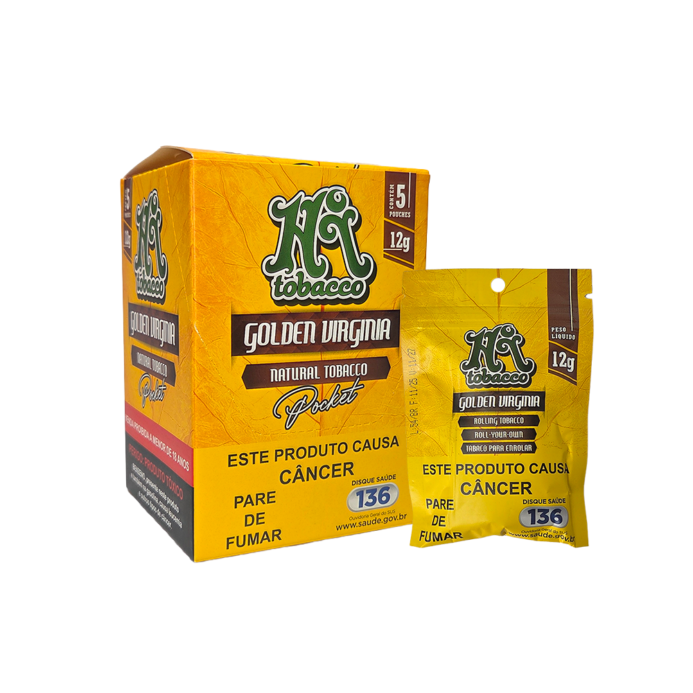 Fumo para cigarros Golden Virginia 12g da Hi Tobacco, o primeiro tabaco desenvolvido pela HBT é extremamente leve de fumar e possui cores claras que remetem ao ouro. O fumo Virginia é livre de processos químicos, o que contribui para um bom equilíbrio do blend mantendo características aromáticas únicas, 100% natural, selecionado a dedo nas lavouras orgânicas onde a marca cultiva seus tabacos e mantém sabor e cheiro da própria folha.