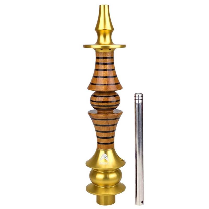 Stem da marca Marajah Hookah modelo Umbrella, corpo em madeira nobre, ponteira e coração em alumínio anodizado. Esse produto requer muito cuidado na hora da limpeza para preservar a beleza e qualidade que somente os produtos Marajah Hookah pode oferecer. Sem roscas, facilitando a limpeza da peça, sem riscos de travamento. A down-stem possui difusor embutido. Seu material é atóxico, ou seja, não faz mal a saúde.