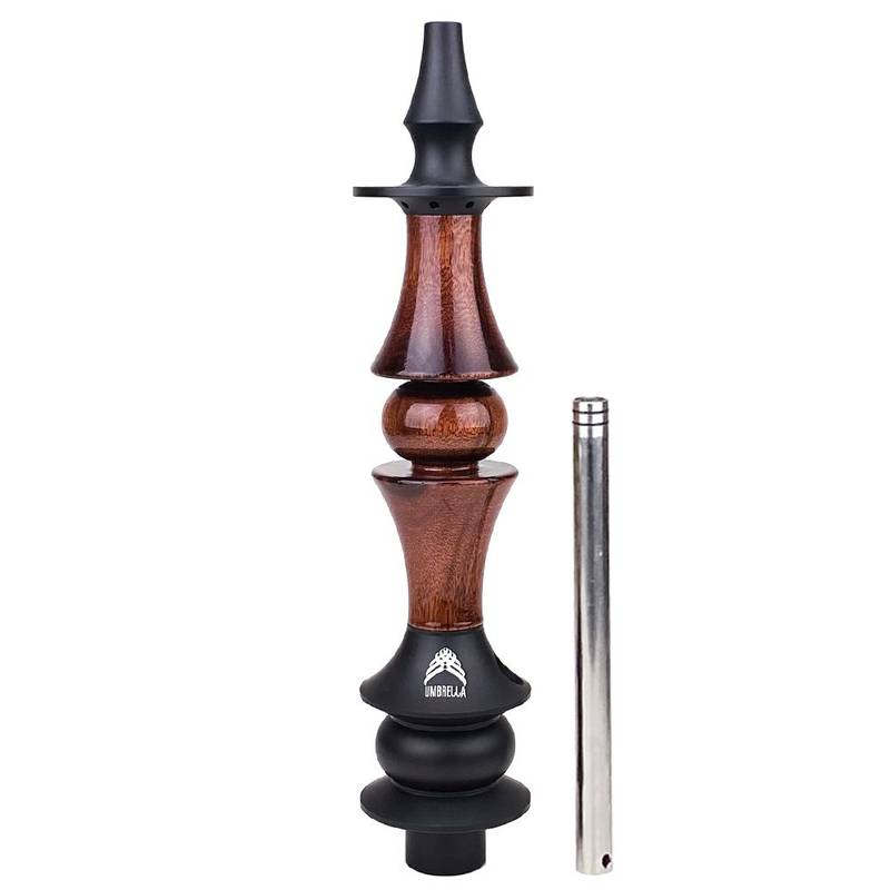 Stem da marca Marajah Hookah modelo Umbrella, corpo em madeira nobre, ponteira e coração em alumínio anodizado. Esse produto requer muito cuidado na hora da limpeza para preservar a beleza e qualidade que somente os produtos Marajah Hookah pode oferecer. Sem roscas, facilitando a limpeza da peça, sem riscos de travamento. A down-stem possui difusor embutido. Seu material é atóxico, ou seja, não faz mal a saúde.